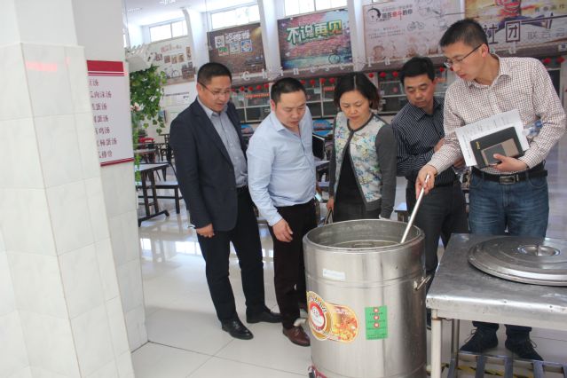 会议第一阶段,蒋兆峰副院长带领参会人员深入到各食堂现场检查,对学生食堂的环境卫生、人员配备、食品质量、设施设备、食品切洗功能分区、饭菜留样、原材料供应等重点环节进行了认真检查及指导,各食堂相互学习优秀做法和经验。