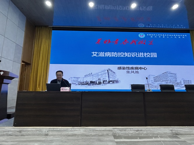 随后,张凤池主任围绕艾滋病传播途径、防控形势及青年群体防护要点展开深入讲解,结合大学生日常作息与生活习惯,精准剖析潜在感染风险,用通俗生动的语言纠正常见认知误区,让科学防护知识深入人心。